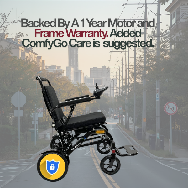 The Glide Care G-5 by ComfyGO is a travel-optimized, airline-approved electric wheelchair designed for adults seeking mobility with freedom and ease. Weighing just 45–46 lbs. (without battery), it folds compactly in seconds and rolls like a suitcase with its extendable handle.