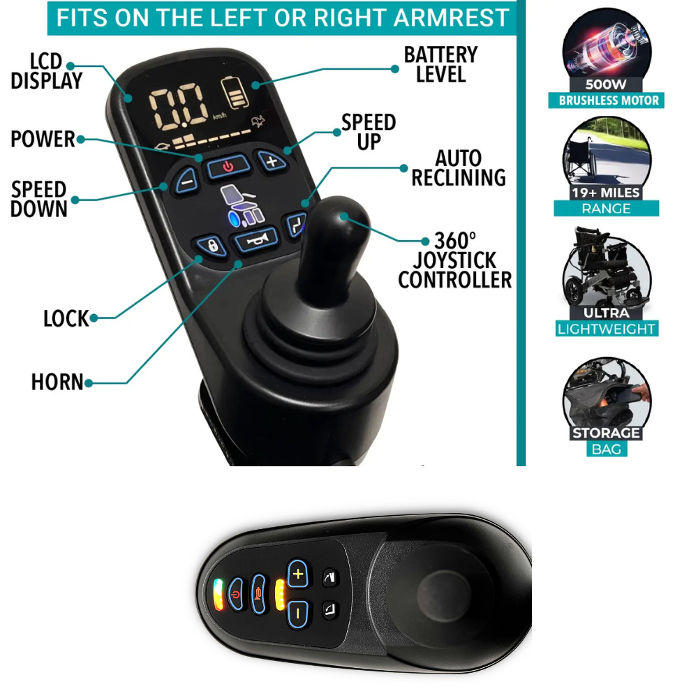 This state-of-the-art wheelchair features a digital joystick controller with an LCD for effortless navigation, alongside automatic reclining capabilities for maximum comfort during your journey. The quick-release function on the controller always ensures seamless operation.