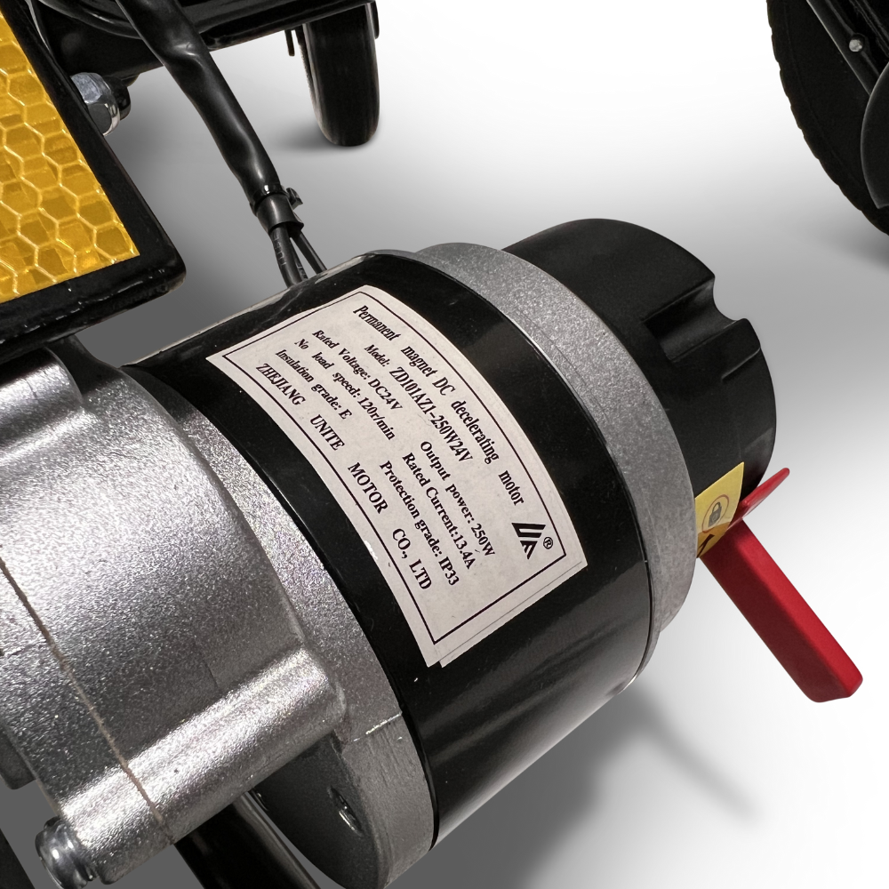 Powered by dual 250-watt brushless silent motors, the IQ-9000 AR can confidently tackle inclines up to 10 degrees. Two quick-release 24V 7.5AH lithium-ion batteries, airline and cruise approved, provide an impressive range of up to 19 miles.
