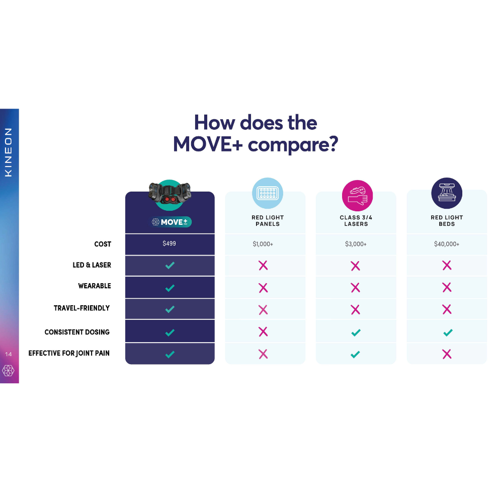 With clinically backed wavelengths and a hands-free, portable design, MOVE+ Pro fits seamlessly into your daily routine.