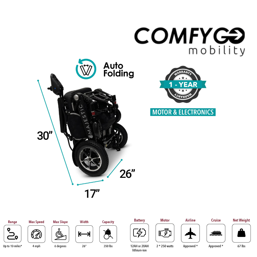 Take Control of your freedom and get yourself plush comfort on the tush with the Majestic Series ComfyGo IQ7000 Remote Controlled Electric Wheelchair.