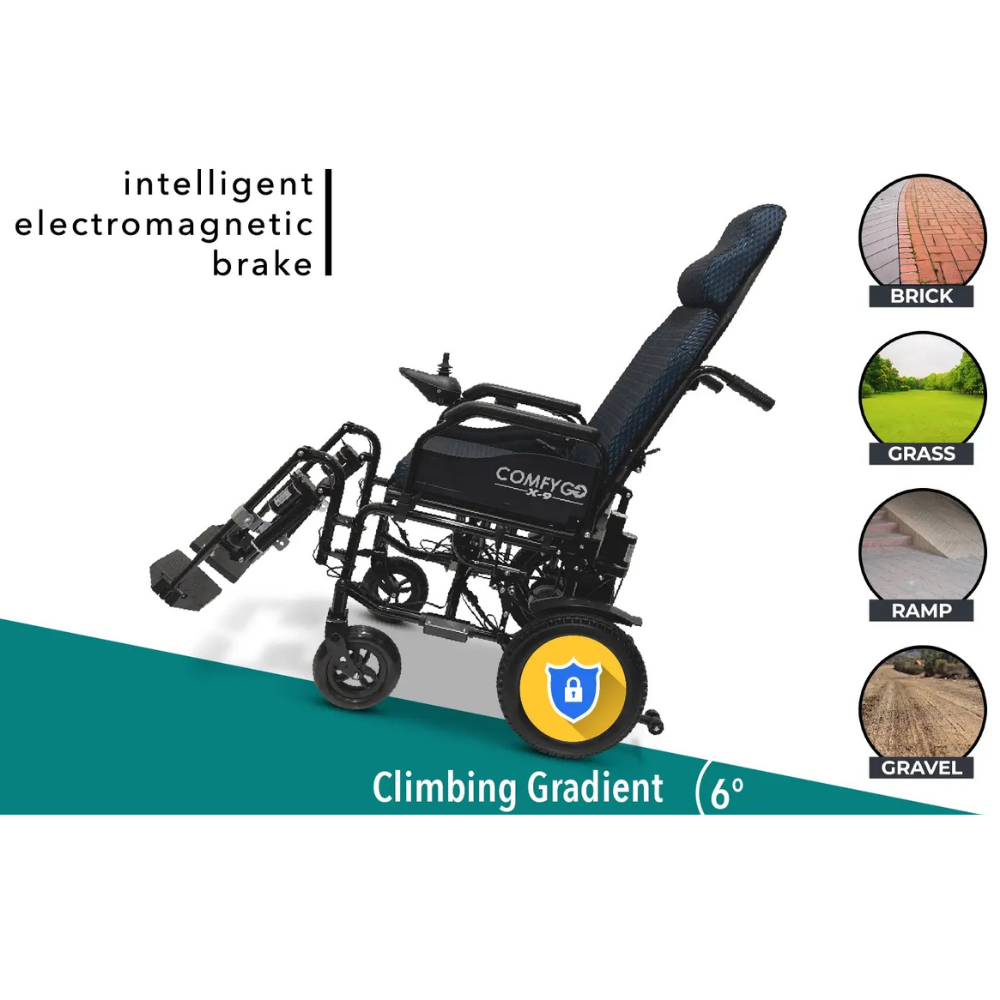 - - ComfyGO X9 Auto-Reclining Electric Wheelchair with Automatic Reclining Backrest.