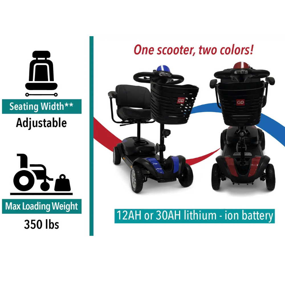 Choose the 12AH battery for a range of up to 13 miles or the 30AH for longer trips and more miles per hour covered. The Z-4 mobility scooter offers two lightweight battery options to suit your needs: the 12AH and 30AH lithium-ion batteries. The 12AH battery is airline and cruise-approved, providing a range of up to 13 miles, while the 30AH battery offers an extended range of up to 30 miles but is not airline-approved.