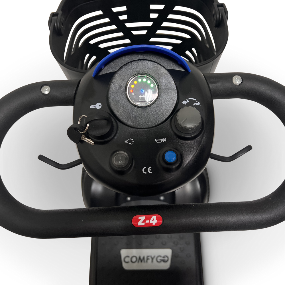 The Z-4 mobility scooter offers simple and intuitive controls, designed for comfortable use with either the left or right hand.